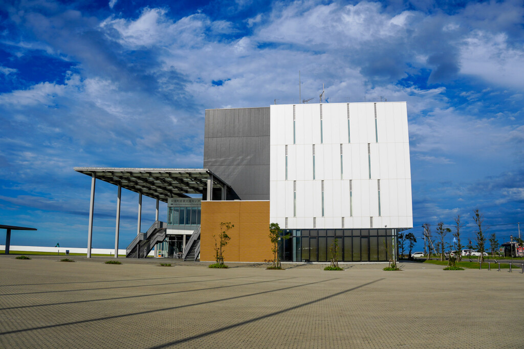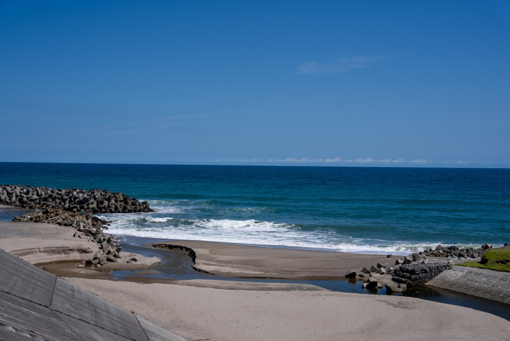 As the path approaches the Asamigawa estuary, the horizon opens toward the Pacific. The Oshu Sunrise Viewpoint draws visitors in the early morning, when light spreads across the water. Coastal windbreak forests and disaster-prevention green spaces line the shore, representing both preparedness and resilience.