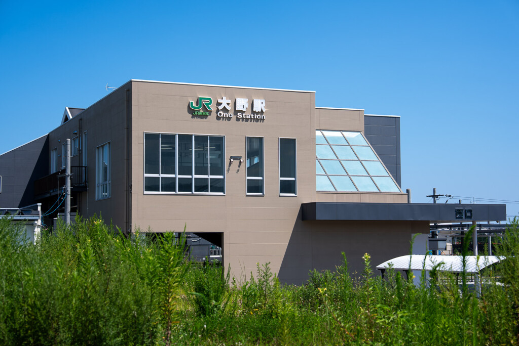 The new Ono Station building connects the town to Joban Line railway, while rows of azaleas and ginkgo trees line sections of the route.