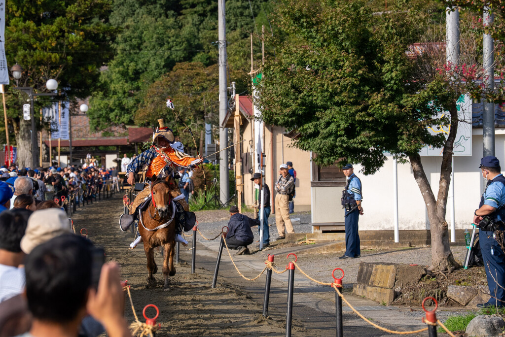 Taking place at the Hachiman Shrine in Furudono Town, deep in the wooded hillsides of Fukushima, there is something amazing about watching the talented horseback archers pounding down the dirt track to take aim at their target. The autumn display is the only one to take place at the shrine, with another smaller event held at the end of June in a wide field.