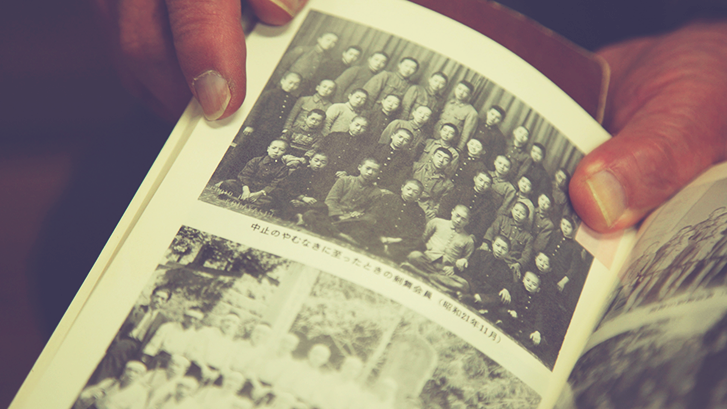 The influence and power of these words are illustrated in the actions of the Byakkotai in 1868. The Byakkotai were a unit of teenage warriors formed as a military support unit. At the Battle of Tonoguchihara, twenty members of the Byakkotai, aged between sixteen and seventeen, committed seppuku on Iimori hill in Aizu-Wakamatsu after mistakenly thinking that their Lord’s castle was on fire and that the battle was lost. Every year a performance is made in their honor. It is called ‘Kenbu’, and generation after generation of Aizu-Wakamatsu High School students have performed in this troupe. Mr. Endo was also a part of the Kenbu performance group when he was at school. He showed me a photograph of himself in the group from 1946, when he was thirteen years old.