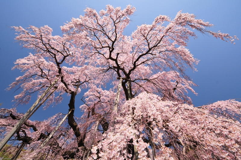 三春滝樱(三春镇)这棵垂枝而下的粉色樱花树被视为一个神圣的国家级名胜。它是日本最有名的三大樱花树之一,据估计它的年龄已达到上千岁。这棵樱花树高达13.5米,树干一圈的周长为11.3米。当你站在树下看到它壮观的姿态和绝美的景色,你便会被它深深吸引,为它驻足。