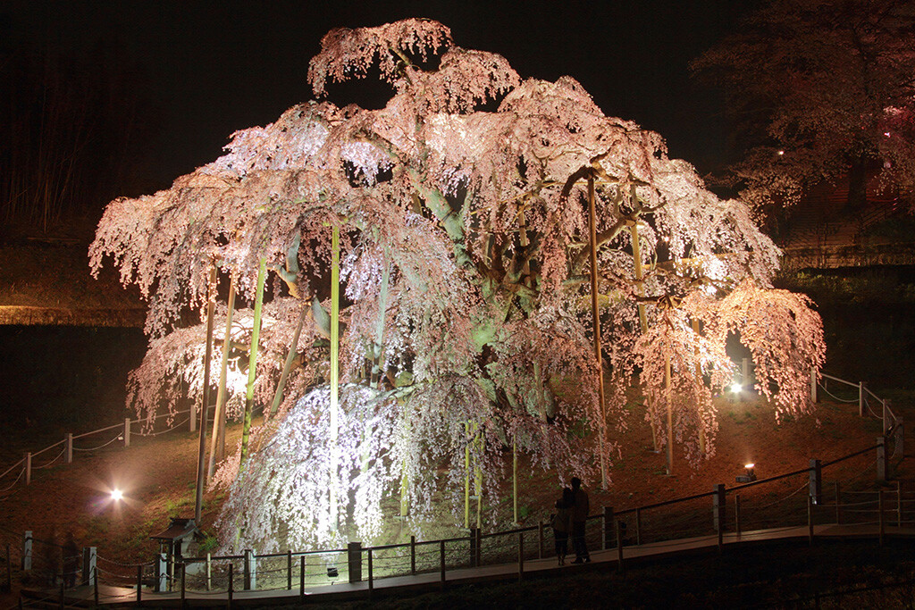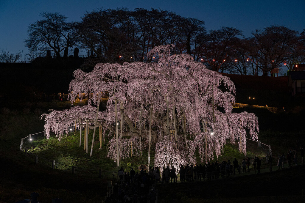 Và khi cây Takizakura khoe sắc, ánh sáng tràn ngập vào đêm tối thúc đẩy thêm sự phấn chấn của bầu không khí kỷ niệm. Khung cảnh tuyệt vời khi cây đang tắm mình trong ánh sáng ban ngày của mặt trời mùa xuân, và vẻ đẹp huyền ảo giống như đang bồng bềnh trên bầu trời đêm đều đem lại ấn tượng sâu sắc và được yêu thích. Một ưu điểm khác của Miharu là mọi người có thể tham quan vô số địa điểm và cây hoa anh đào nổi tiếng trong chỉ cùng một chuyến đi duy nhất. Takizakura được bao quanh bởi nhiều cây cổ thụ nổi tiếng khác, như cây Jizozakura 400 năm tuổi, được gọi là con gái của Takizakura, và cây Fudozakura 350 năm tuổi, cũng được coi là thế hệ sau của Takizakura. Bạn còn chần chừ gì mà không đến đây và thưởng thức vẻ đẹp huy hoàng của những cây hoa anh đào đã sinh trưởng qua nhiều năm tháng này? Trước khi đến thăm, hãy đảm bảo là bạn đã chuẩn bị sẵn sàng máy chụp ảnh ưa thích của mình nhé. Sao bạn không cố gắng để chụp được bức ảnh đẹp nhất bằng phương pháp dò tìm những vị trí chụp khác nhau, cài đặt máy chụp ảnh, thậm chí điều chỉnh cả hướng gió và góc chụp nhỉ? Hãy chụp ảnh thật nhiều sắc thái khác nhau của hoa anh đào để sử dụng làm màn hình chờ trên điện thoại thông minh, hoặc để sưu tập thành một album nhé. Du khách có thể nhận ra có nhiều nét khác nhau của hoa anh đào chỉ riêng bên trong Miharu tùy thuộc vào sự đa dạng và vị trí của các cây hoa anh đào. Mỗi năm, các cây hoa anh đào chỉ khoác lên vẻ đẹp rực rỡ của sự khai hoa trong khoảnh khắc. Hoa nở rộ đồng loạt trong một thời gian ngắn, và chẳng bao lâu, những cánh hoa sẽ tàn và lại rơi xuống đất. Hãy chắc chắn là bạn đã kiểm tra online những thông tin mới nhất về thời gian nở của hoa anh đào trước khi lên chuyến đi tới Miharu nhé.